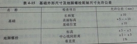 1.檢查基礎的外形尺寸,其公允公差見表4-15.